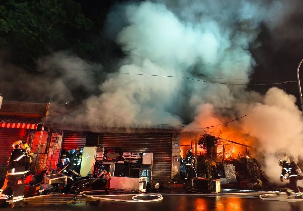 台北一家电维修厂凌晨突发火灾,火势迅速蔓延并冒出大量浓烟